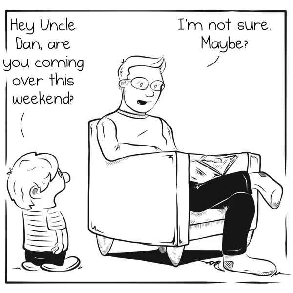 Not that I had that much in mind, when I began trying to draw the comic. I was more concerned with figuring out how to get any kind of visual narrative out of an 18-word quote. And how to draw a bridge? I played around with different ideas, but knew I didn’t want a bridge itself, if only because it seemed too literal. A desert landscape of surreally tall hoodoos felt interesting, so I went with that. The main character is female because this comic was a learning exercise, and females are harder for me to draw. (Also, to many, religion is freighted with misogyny or with misguided notions of modesty, and it felt nice to undercut any such association by making the hero a strong lady in comfortable gym clothes.) She got a cat because Princess Nausicaa has a pet, and I was flipping through that comic to try and learn how to draw anything at all. Drawing this was far more challenging than anything I’d attempted before, and was beyond my abilities when I began it. I’m happy to have completed it at all.